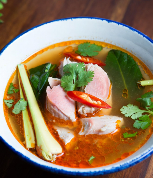 Паста том ям, шампиньоны, черри, куриное филе, кокосовое молоко, имбирь, лайм
