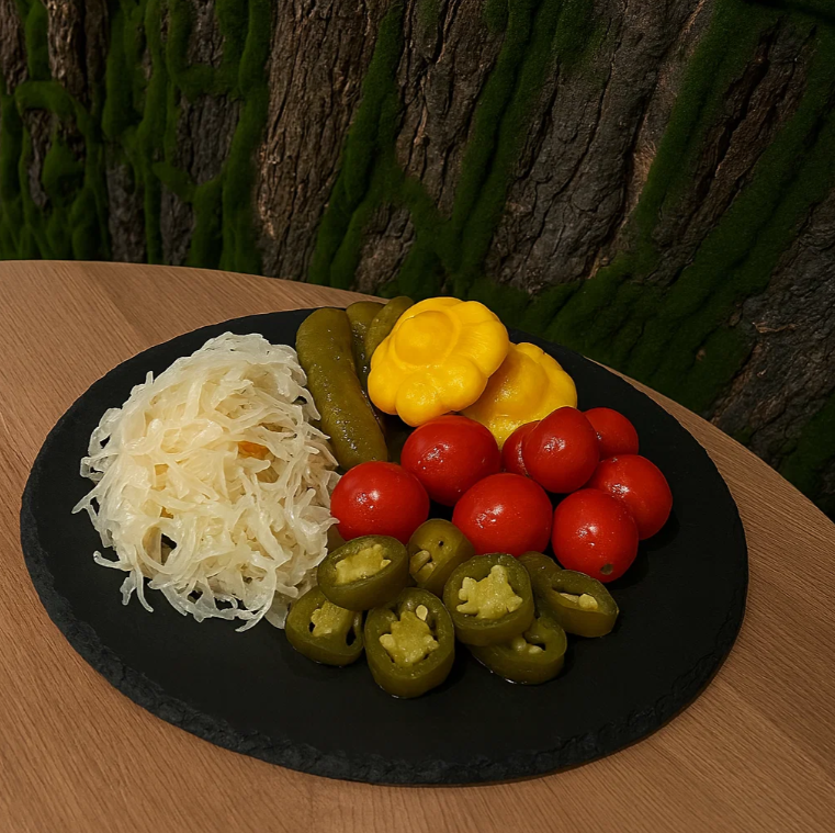 Квашеная капуста, корнишоны, халапеньо, патиссоны, черри