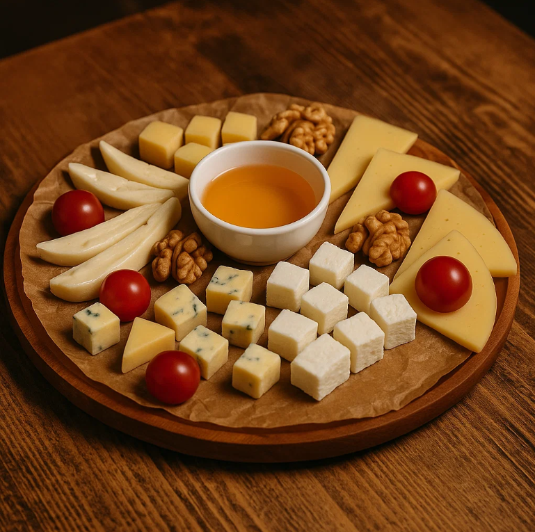 Картофель фри, сырные палочки, гренки бородинские, луковые кольца+ 2 соуса на выбор